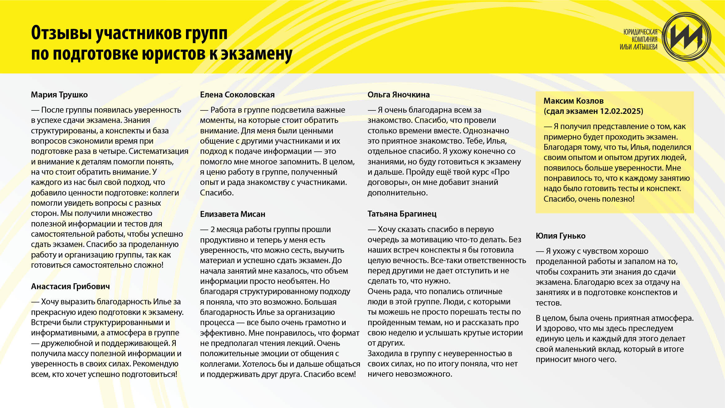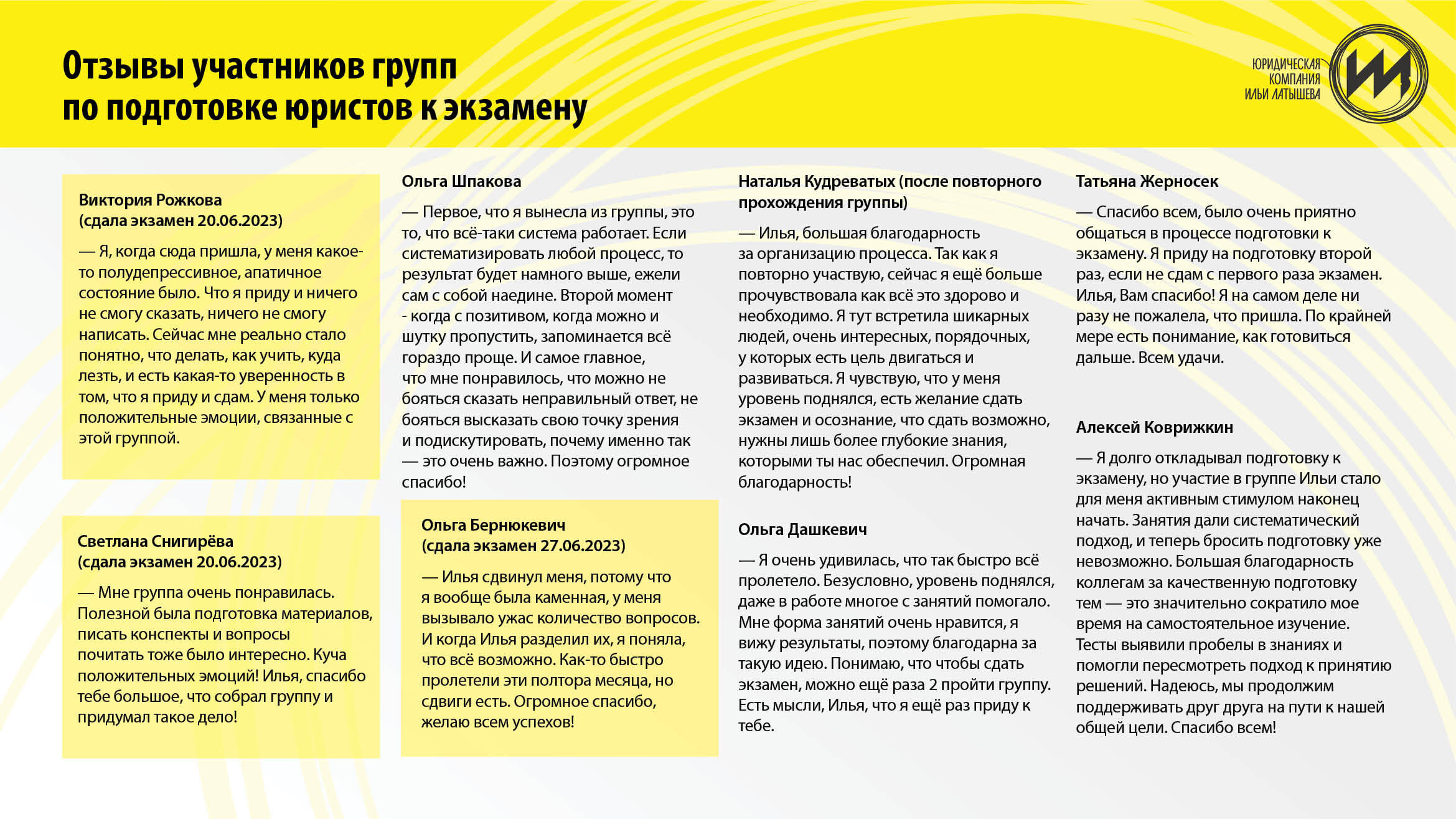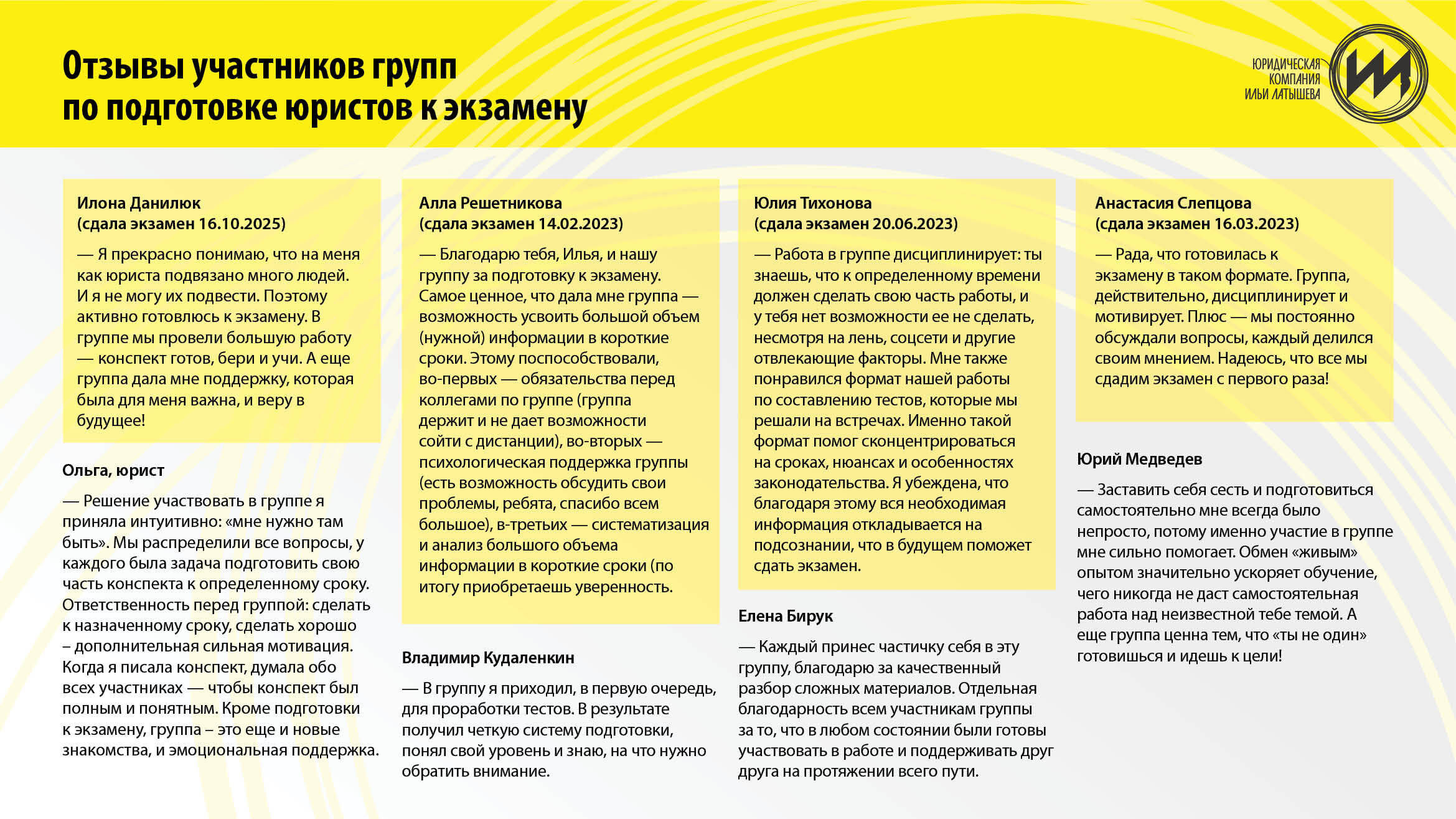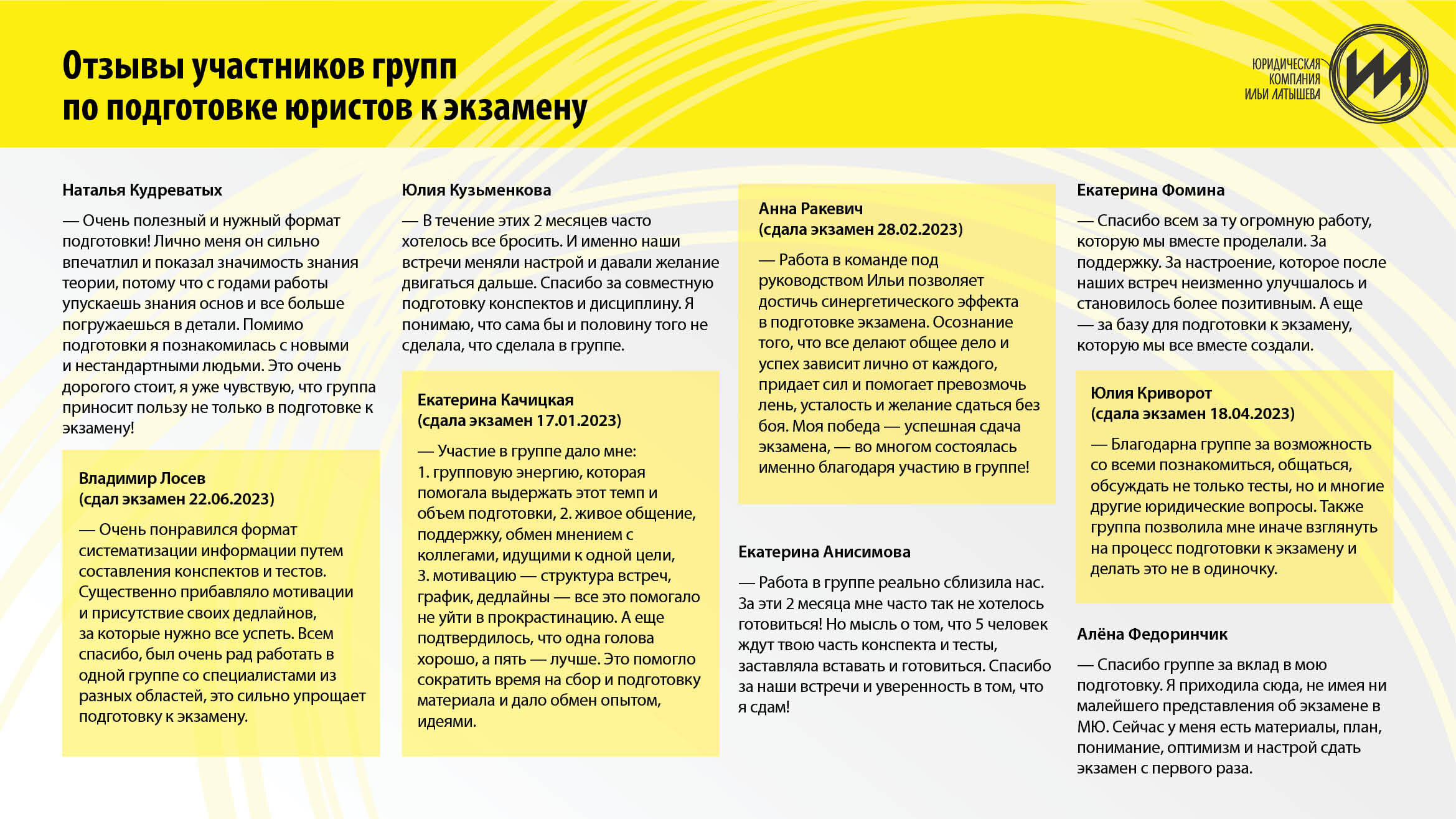 Не все юристы готовы идти ко мне в группы подготовки, привязываться к жестким дедлайнам и готовиться в быстром темпе. Я получал сотни запросов на материалы для самостоятельной подготовки.